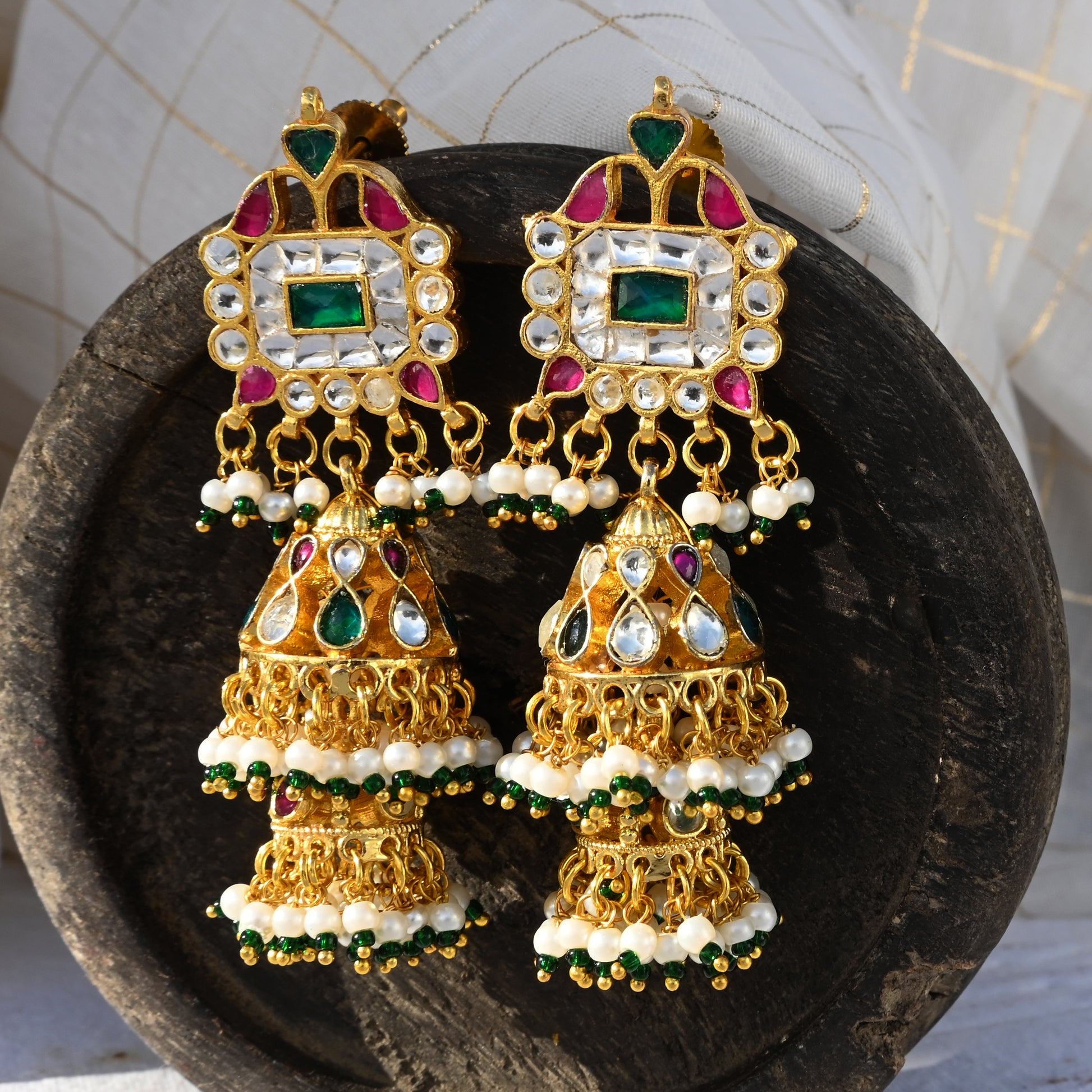 This exquisite Kundan Jewellery is crafted from high-quality alloy and adorned with authentic precious, semi-precious Kundan set in silver foil, all elegantly dipped in 18k gold plating for a luxurious finish.